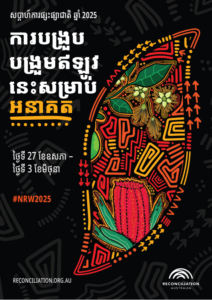 នៅក្នុងស្នាដៃសិល្បៈប្រធានបទ #NRW2025 ដែលបង្កើតដោយស្ត្រី Kalkadoon ឈ្មោះ Bree Buttenshaw រុក្ខជាតិក្នុងស្រុក – ដែលត្រូវបានគេស្គាល់ថាជាការដុះឡើងឡើងវិញបន្ទាប់ពីភ្លើងឆេះ ហើយកំពុងរីកចម្រើនតាមរយៈភាពមិនអំណោយផល – ជានិមិត្តរូបនៃកម្លាំងរួមរបស់យើង និងលទ្ធភាពនៃការបន្តជាថ្មី។ នេះគឺជាពេលវេលាសម្រាប់ការលូតលាស់ ការឆ្លុះបញ្ចាំង និងការប្តេជ្ញាចិត្តក្នុងការដើរជាមួយគ្នា។
