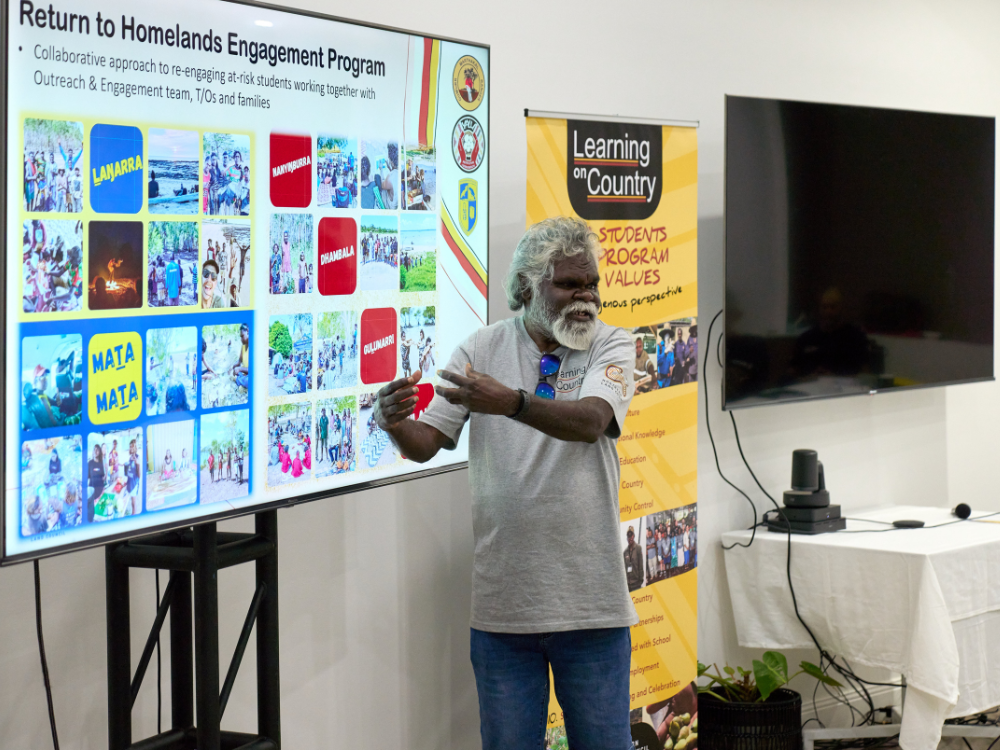 The Learning on Country (LoC) Program was established in 2013 as a joint initiative between Aboriginal ranger groups and schools. Today, the program is offered across 17 Top End (NT) remote communities with 15 involved in 2024. LoC’s governance structure ensures Aboriginal ownership and control through local community committees and an all-Indigenous steering committee, which includes a representative from each community committee and provides overarching cultural and strategic guidance.
