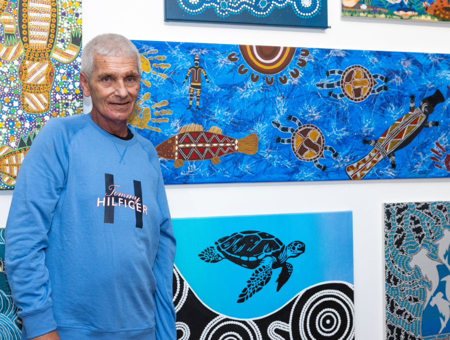 At 16, Gunditjmara/Keerraaywoorrong man Chris Austin entered Pentridge Prison. After nearly 30 years, and with support from The Torch Project, art liberated him. This NRW, Chris (pictured in front of his painting ‘Looking After the River’) led tours through the prison to share his experience with incarceration. Photo: The Torch Project