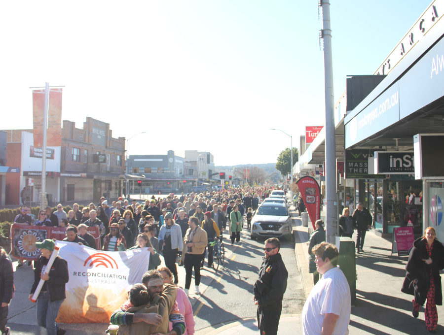 Reconciliation Australia staff joined thousands of community members and students from across the region on the annual walk down the Queanbeyan main street, organised by the Queanbeyan-Palerang Regional Council. Photo: Reconciliation Australia