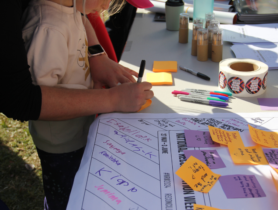 Thousands turned up to Commonwealth Park to celebrate ACT Reconciliation Day – the only such public holiday in any state or territory. Visitors to the Reconciliation Australia stall marked their personal commitments to reconciliation. Photo: Reconciliation Australia