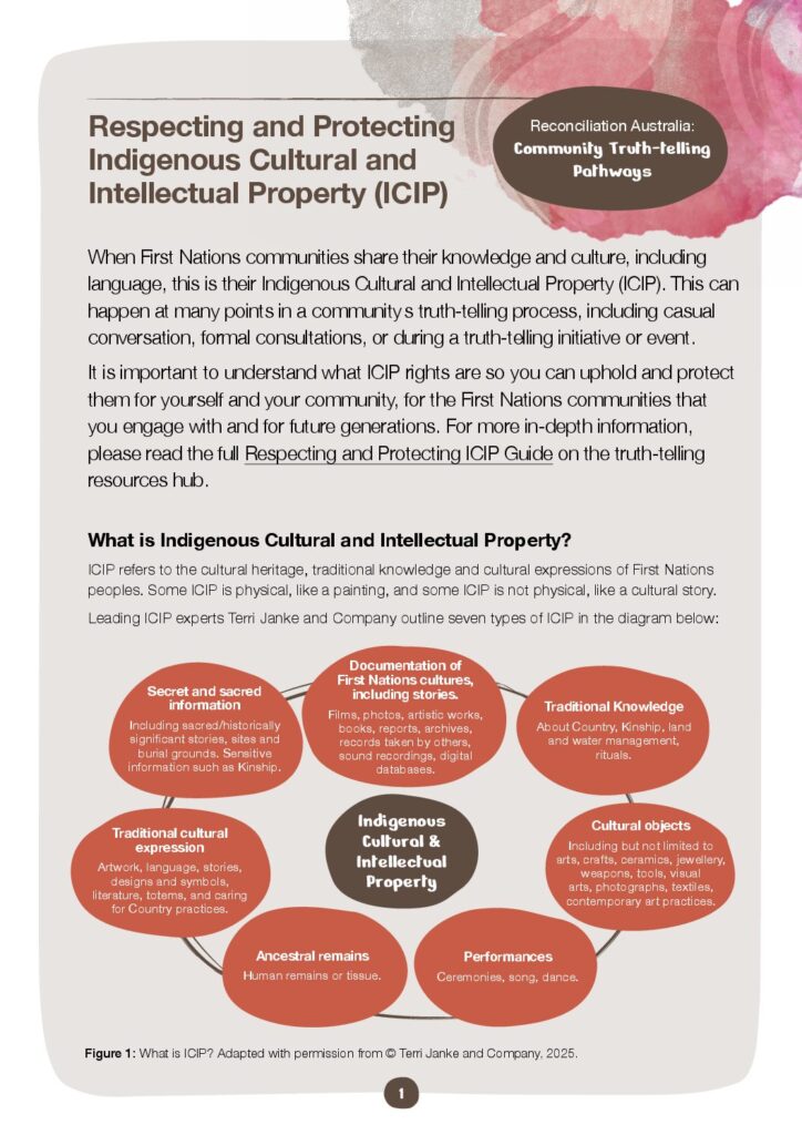 These resources were developed by Reconciliation Australia and Terri Janke and Company Lawyers and Consultants. Start with the short fact sheet and delve into the guide for more information.